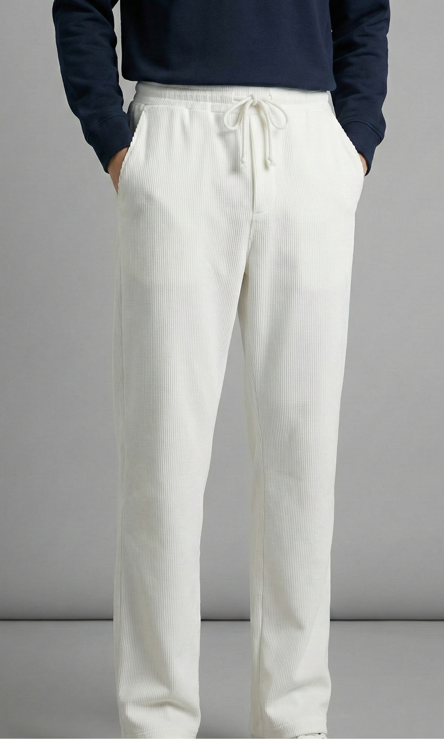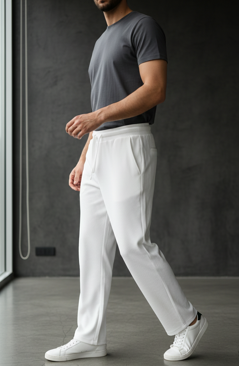 Men’s Ribbed Texture Relaxed Trousers – Off-White
