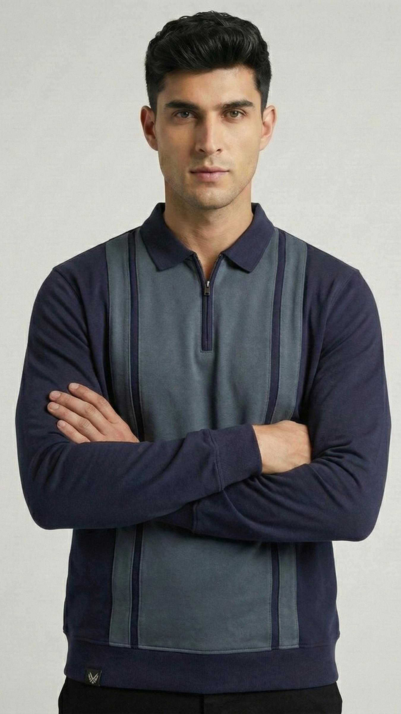 Redefine your smart-casual wardrobe with the VOGUE X PQ PANEL FULL SLEEVES. Designed for the modern man who values structure and sophistication, this sweatshirt blends the comfort of premium loungewear with the sharp aesthetic of a classic polo.